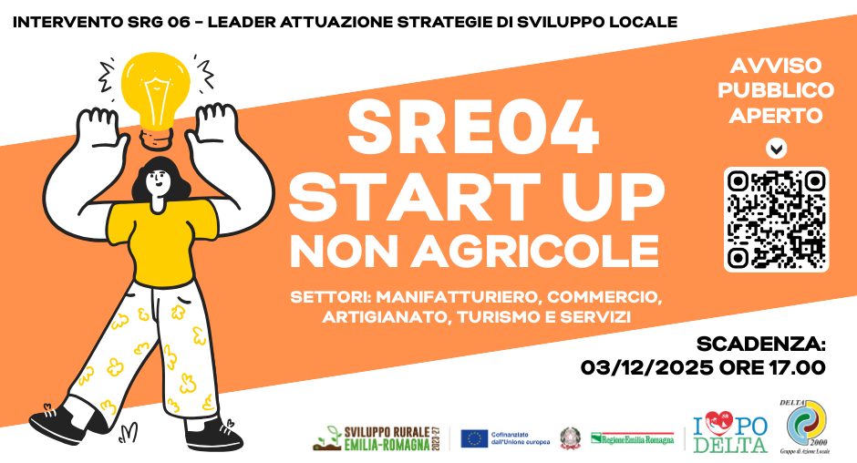 Il GAL DELTA 2000 ha pubblicato il Bando “SRE04 – Start up non agricole” rivolto a: