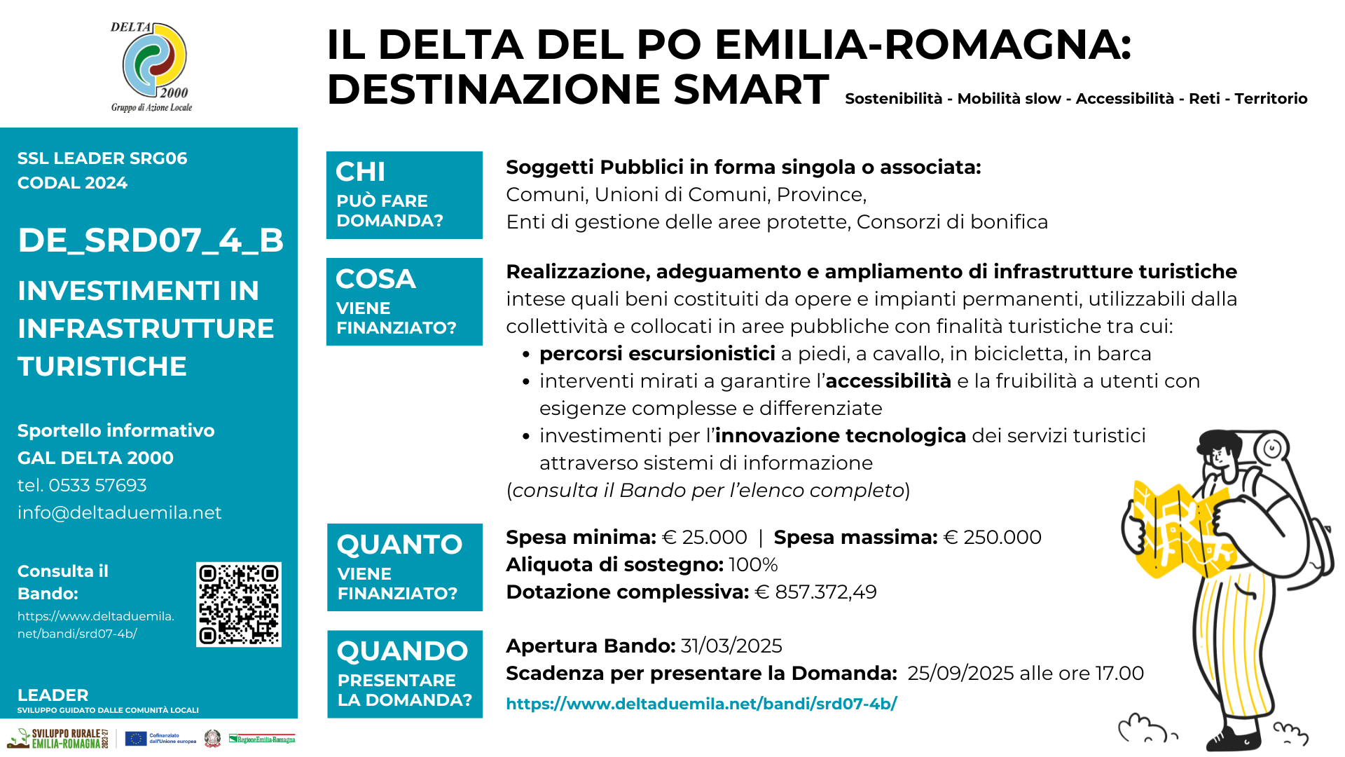 Beneficiari: Comuni, Unioni di Comuni, Province, Enti di gestione delle aree protette, Consorzi di bonifica, limitatamente alle aree localizzate nel territorio del G.A.L. DELTA 2000