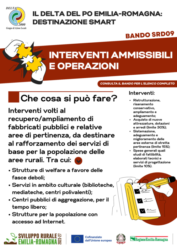 Beneficiari: Comuni (singoli ed associati), localizzati nel territorio del G.A.L. DELTA 2000 ad esclusione dei territori che ricadono in zona A.
