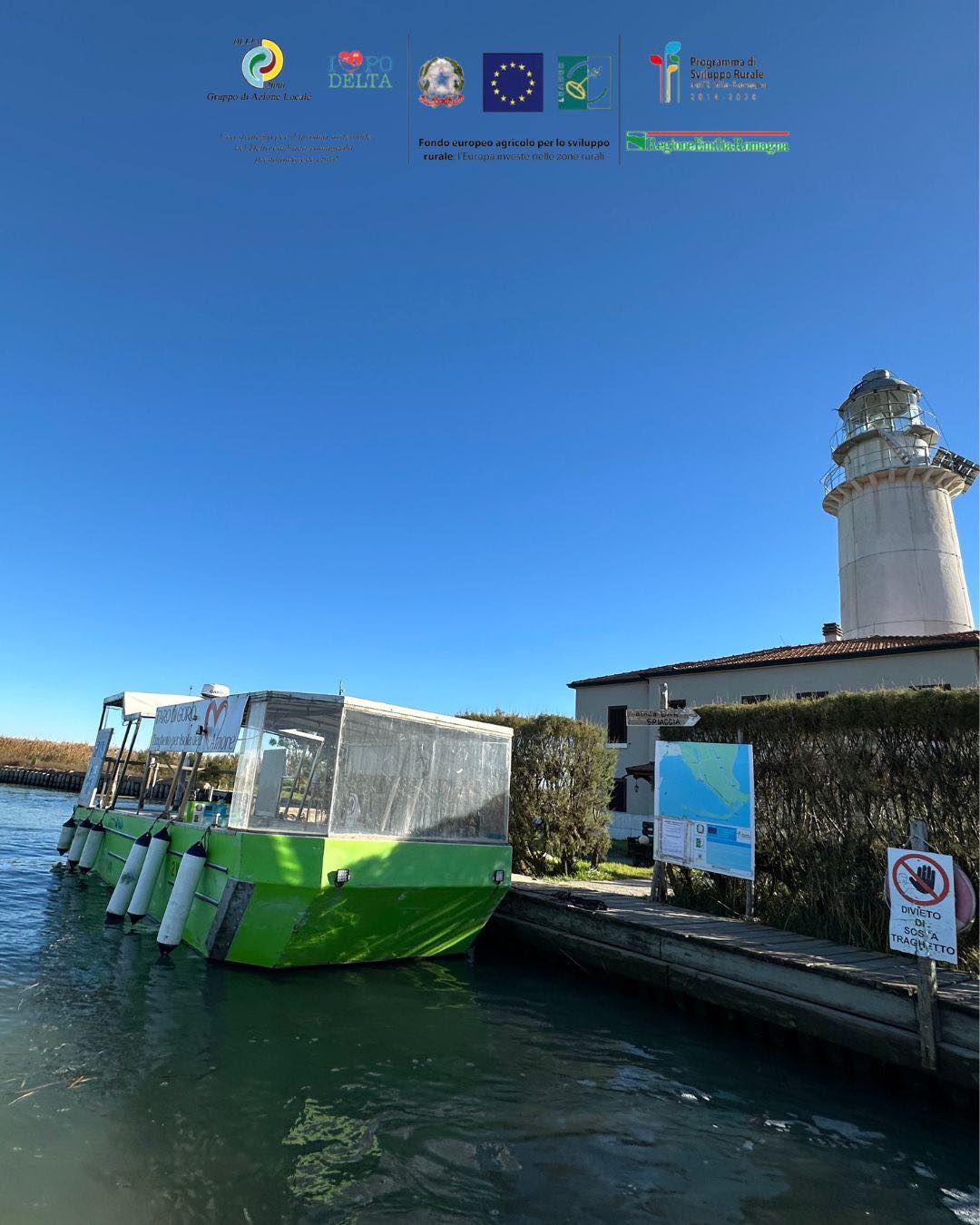 Il contributo dell’Azione 19.2.02.05 ha contribuito all’acquisto di un traghetto in vetroresina, legno e acciaio inox dotato di piattaforma mobile per imbarco di sedie a rotelle per disabili e accesso previsto anche alle biciclette. Il traghetto sarà provvisto di 12 binocoli fissi per l’osservazione della fauna locale, ideali per il birdwatching.